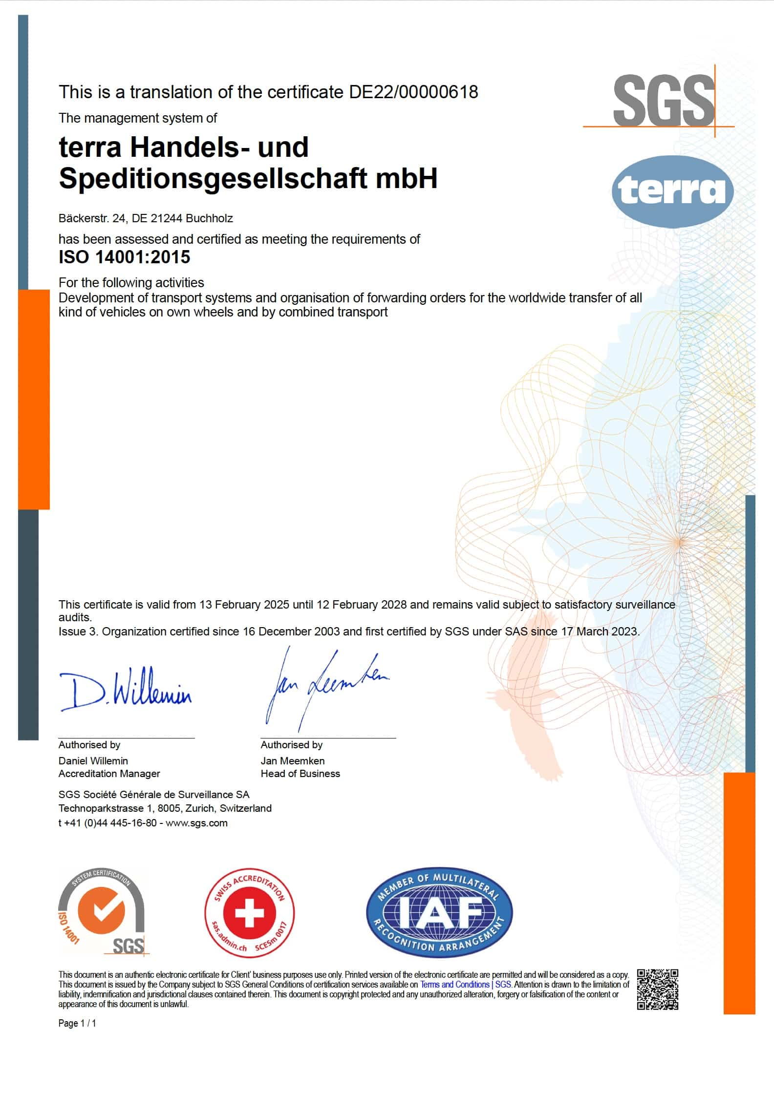 Avec la certification ISO 14001, terra certifie qu’elle respecte toutes les normes environnementales pertinentes et fait ainsi preuve d’un engagement responsable pour protéger cette planète.